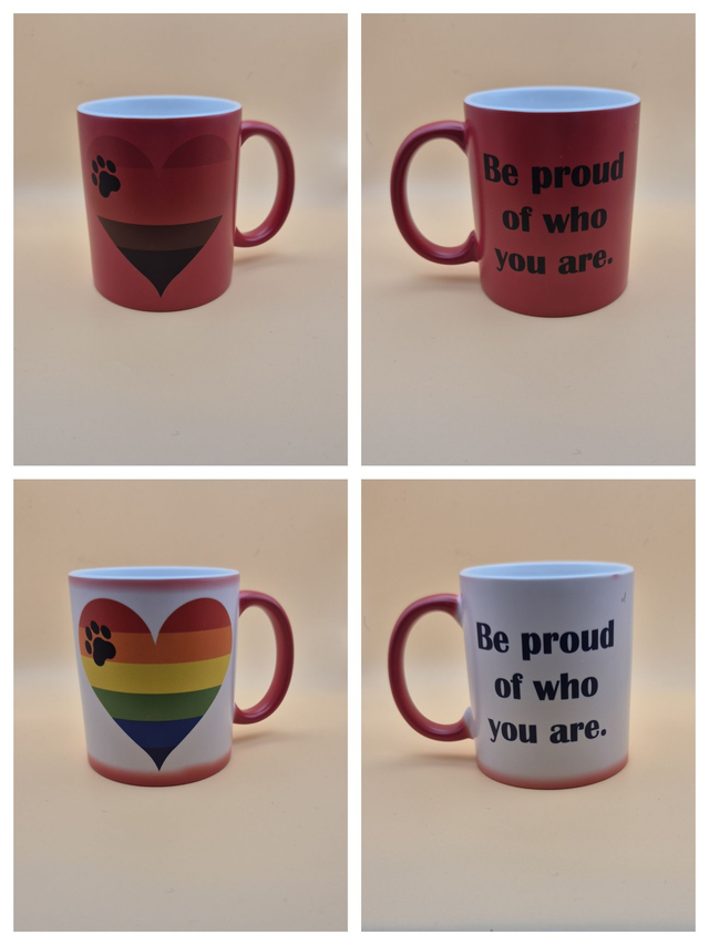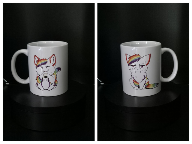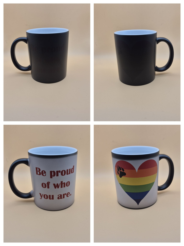 Die Bilder habe ich mittels eigenem Sublimationsdruck aufgebracht. Die Becher sind spülmaschinengeeignet. Es wird empfohlen, die Zauberbecher nicht in der Spülmaschine zu waschen.