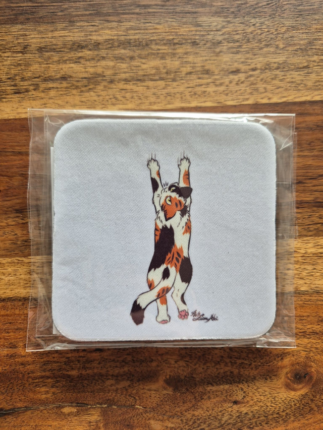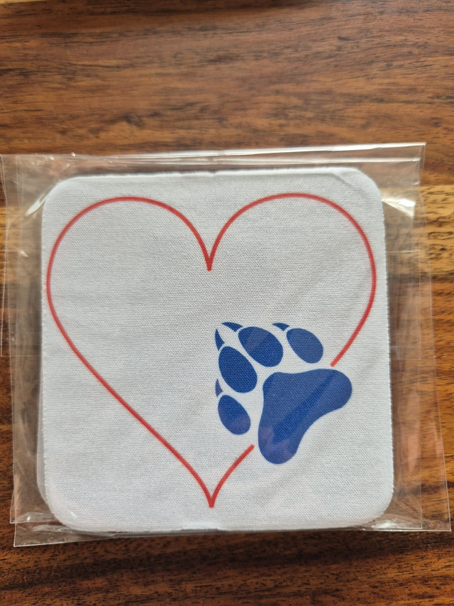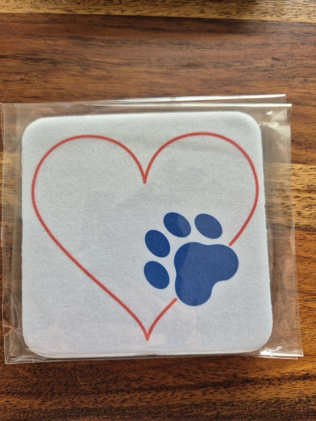 Die Untersetzer sind von mir sublimiert, wasser- und uv-beständig. Die Unterseite ist aus rutschfestem Gummi; die Oberseite ist stoffähnlich und waschbar.
